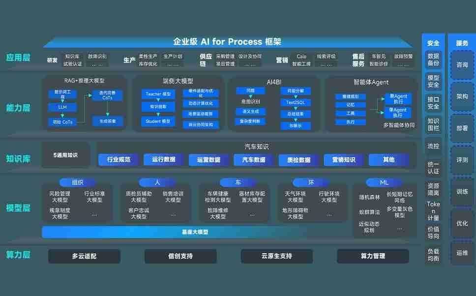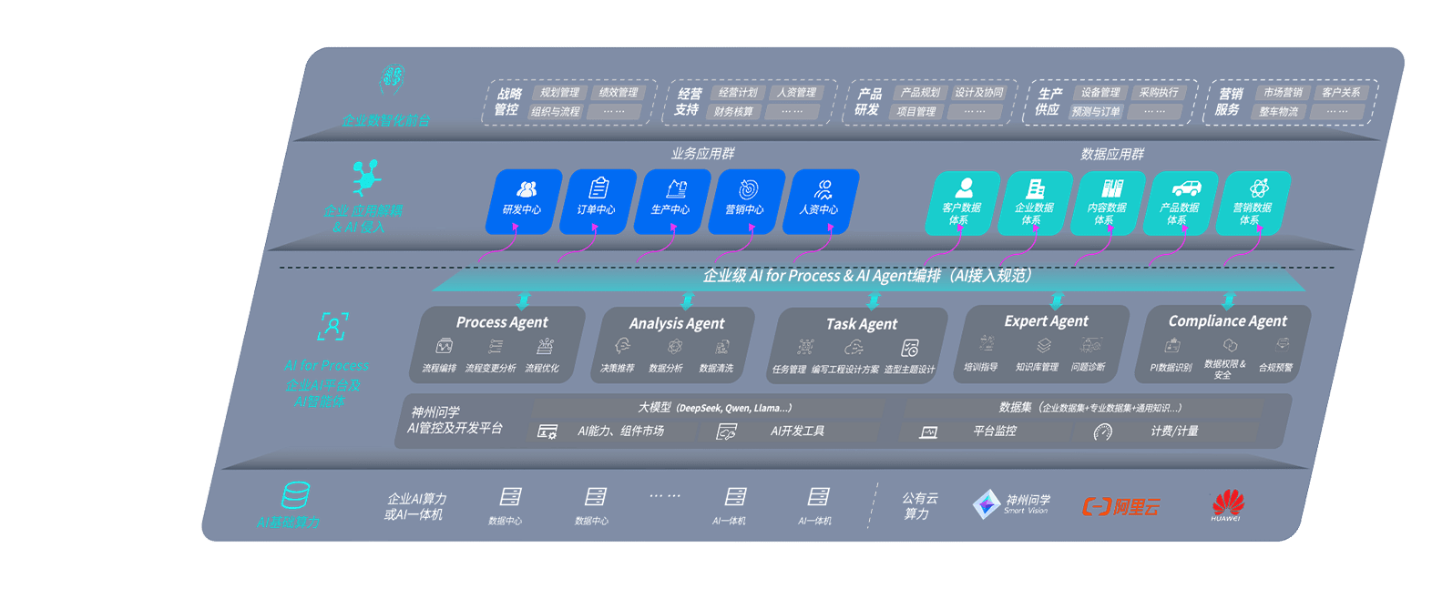 端到端的一站式AI工作空间深度融合了从企业战略规划到日常经营的全流程业务板块,,定向解决车企内部领域多、、部门多、、链条长、、、、场景碎片化等难题,,,,支持车企快速构建以AI为核心的生产力写作体系,,,,实现任务执行与AI能力的无缝集成与交互