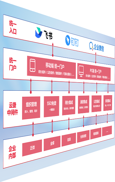 对协作平台提供支持服务,,,支持企业应用与协作平台对接,,,包含组织同步、、、消息集成、、、、待办集成等。。。支持目前主流的协作平台:钉钉、、企微和飞书。。。